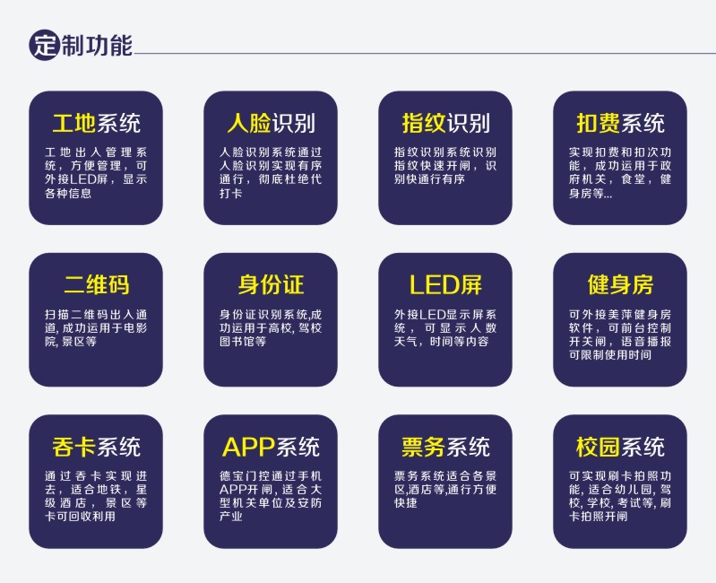 系統(tǒng)解決方案包括:大廈一卡通、小區(qū)一卡通、企業(yè)一卡通、校園一卡通等。通過覆蓋全省的銷售和服務(wù)網(wǎng)絡(luò),“HR”品牌的產(chǎn)品和系統(tǒng)以其_的功能、_的性價(jià)比和可靠性,已經(jīng)廣泛地應(yīng)用于政府、稅務(wù)機(jī)關(guān)、銀行、郵電、大型廠礦、部隊(duì)、智能小區(qū)及交通等各個(gè)領(lǐng)域,倍受各界用戶的青睞,使客戶盡情享受智能科技帶來的高品質(zhì)生活。 市場給了我們機(jī)遇,客戶給了我們發(fā)展,競爭給了我們動(dòng)力。